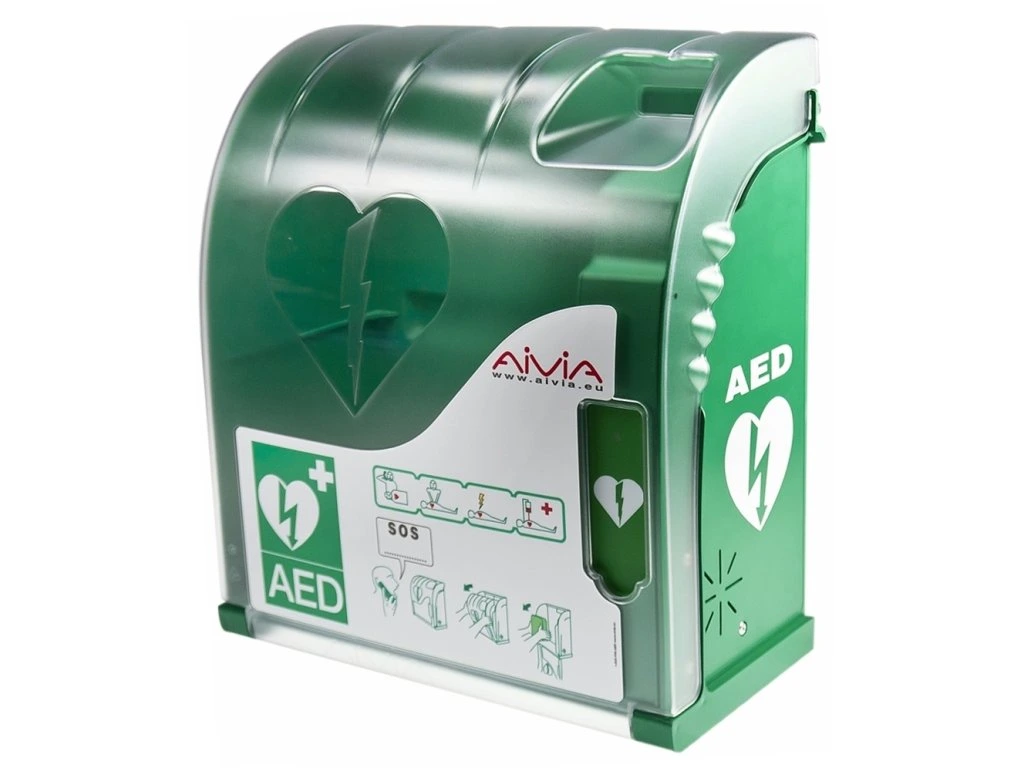 Schránka je určena pro bezpečné uložení automatického externího defibrilátoru. Schránka na defibrilátor AED se umisťuje na viditelné, dobře dostupné místo. Dosažitelnost defibrilátoru AED je ideální do 2 minut. Díky otvorům na zadní straně skříňky je možné skříňku upevnit na zeď. Umístění defibrilátoru je vhodné do všech veřejných prostorů, jako jsou průmyslové areály, sportovní nebo kulturní zařízení, kanceláře, školy a jiné.