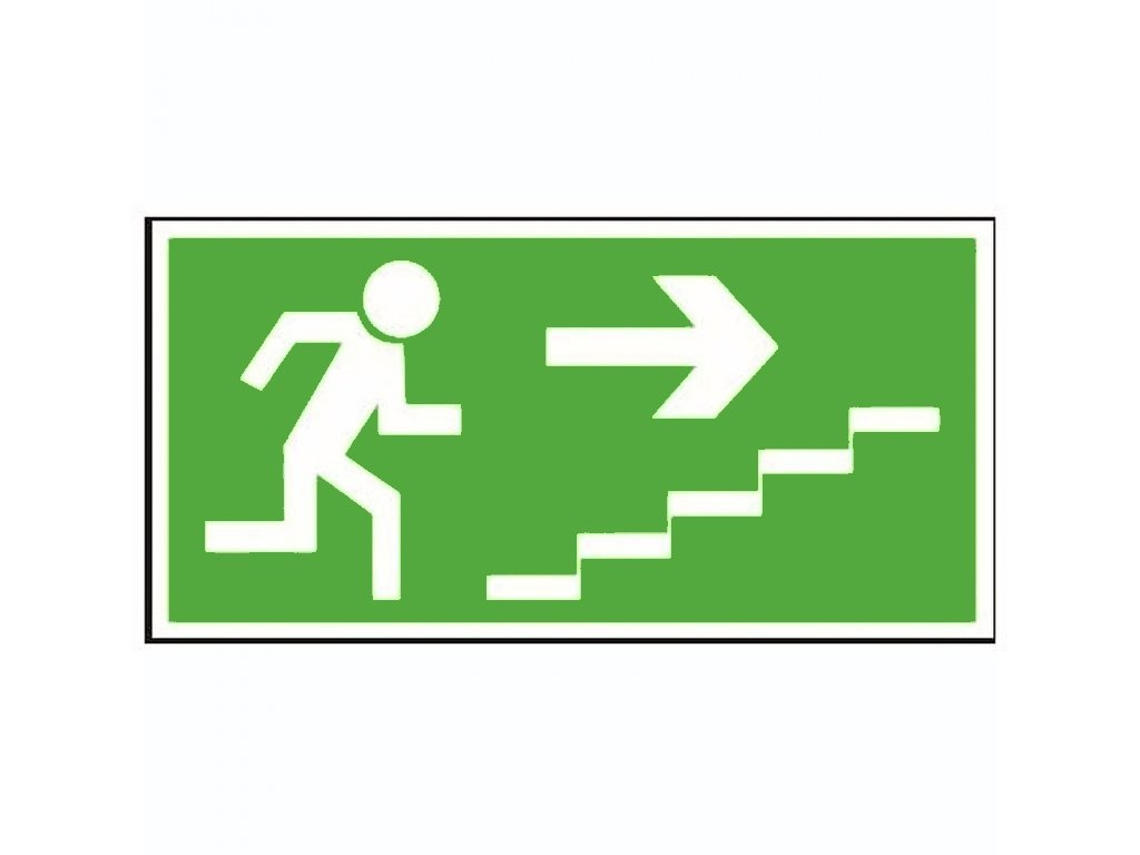 Úniková cesta schody nahoru, vpravo - fotoluminiscenční, plast/samolepící fólie